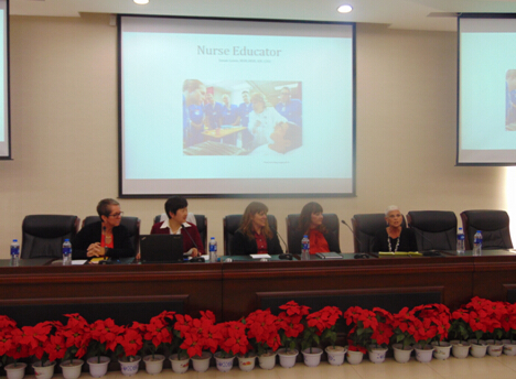 10月份15日上午10时,在致远楼第一会议室,副教授Beth携同3位博士研究生为万象城awcsport官网2015级及2014级的部分同学做了“关于美国Nurse Practitioner(从业护士)”的交流讲座。会议由人文教研室主任崔仁善教授主持。