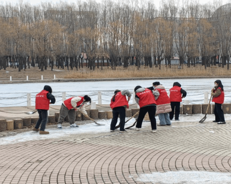 万象城awcsport官网青年志愿者在校内进行了"美丽校园,你我共建"清雪活动。志愿者们不畏严寒,不惧艰辛,有条不紊地清扫路上的积雪。同学们干劲十足,为校园整洁的环境辛勤劳动,挥洒着自己的汗水,忙碌的身影构成了一道亮丽的风景线。